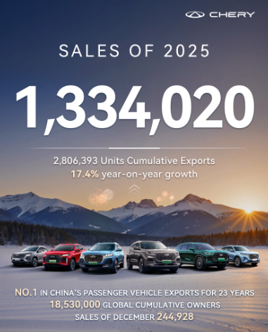 Pada sektor ekspor, Chery mencatatkan rekor baru. Penjualan ekspor Desember mencapai 144.430 unit, melonjak 46,8 persen dibandingkan tahun sebelumnya dan untuk pertama kalinya menembus angka 140 ribu unit dalam satu bulan. Sepanjang 2025, total ekspor Chery mencapai 1.344.020 unit, naik 17,4 persen secara tahunan. Secara kumulatif, ekspor global Chery kini telah menyentuh 5,85 juta unit, sekaligus mempertahankan statusnya sebagai eksportir mobil penumpang terbesar Tiongkok selama 23 tahun berturut-turut.