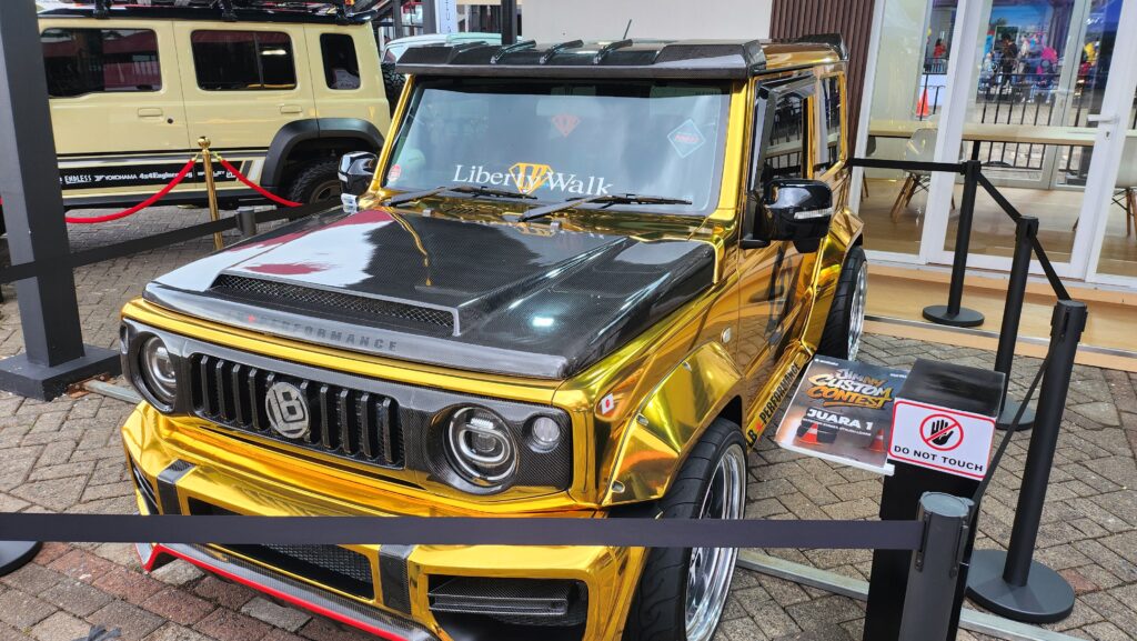 Sementara itu, kategori Street & Stylish Looks menunjukkan sisi lain Jimny yang lebih urban. Jimny JB74 milik Raden Haryo Britomo tampil dengan warna two-tone emas dan hitam, suspensi ceper khas street style, velg hitam berprofil tipis, serta sentuhan stiker LBWK. Hasilnya, Jimny tampil rampil dan stylish, membuktikan bahwa SUV ikonik ini tak selalu identik dengan gaya adventure.