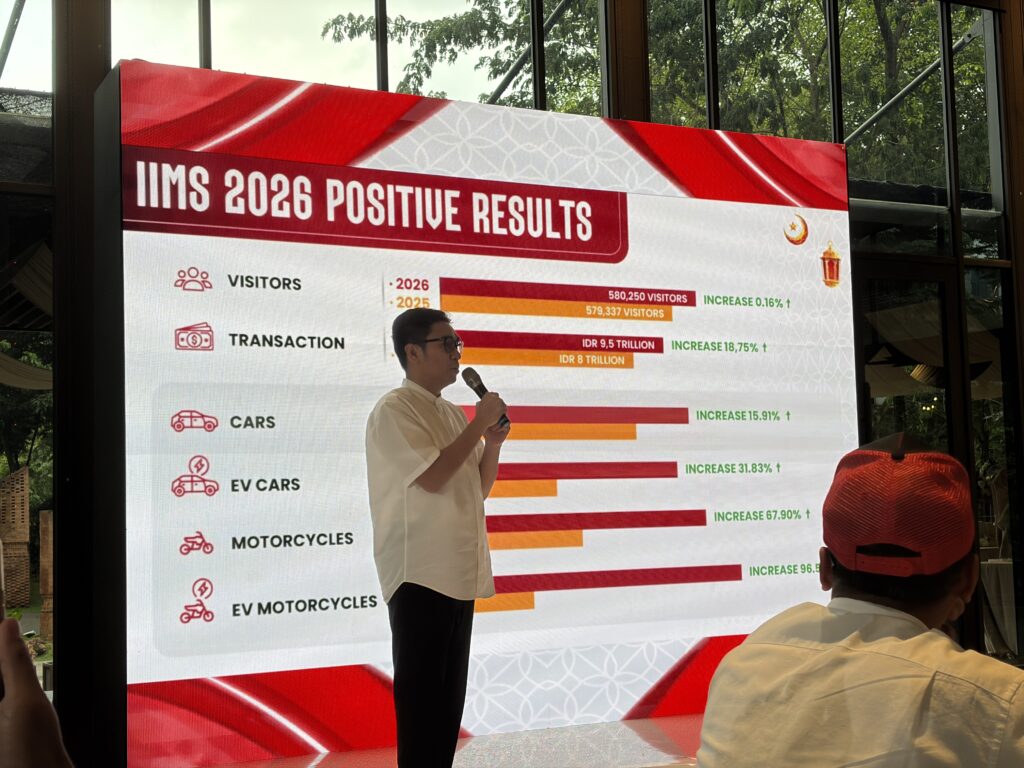 Penjualan EV di IIMS 2026 tercatat meningkat hingga sekitar 30 persen dibandingkan tahun sebelumnya. Bahkan komposisi mobil listrik dan plug-in hybrid kini sudah menembus lebih dari 40 persen dari total transaksi mobil, naik dari sekitar 36 persen pada 2025.