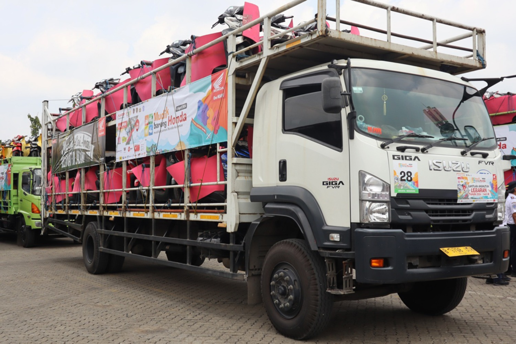 Mudik 2026 lebih terorganisir dengan 22 bus dan 11 truk pengangkut sepeda motor Honda.