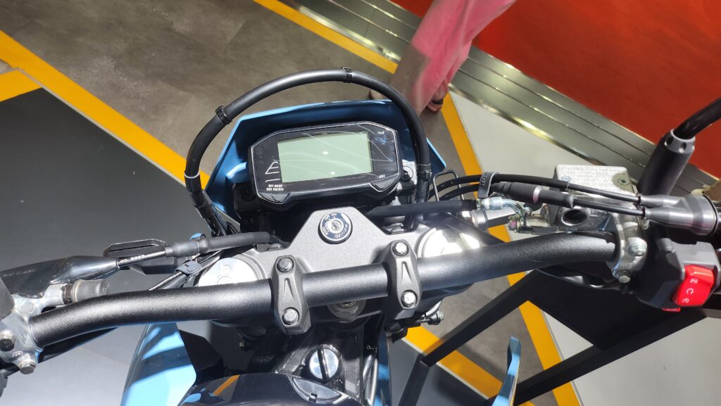 Masuk ke area kokpit, panel instrumen sudah full digital dengan layar minimalis. Fitur yang dibawa pun cukup lengkap untuk kelasnya, termasuk pilihan mode berkendara dan sistem ABS (Anti-lock Braking System) yang dapat dinonaktifkan.