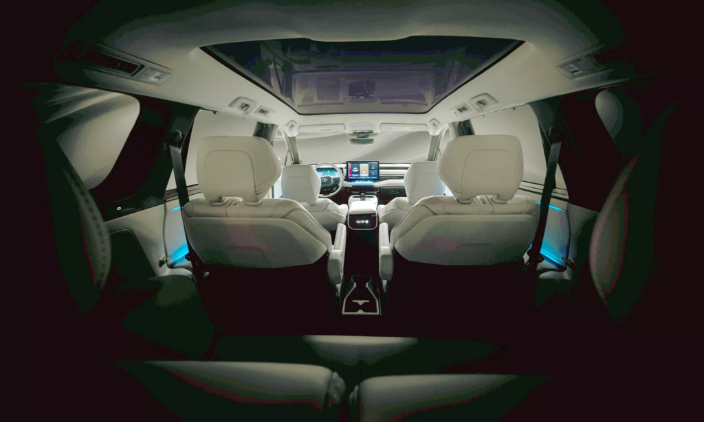 Dilansir dari Carscoops, teaser tersebut menampilkan siluet interior dengan konfigurasi jok tiga baris. Jok baris kedua model captian seat, serta mempunyai panoramic sunroof yang membentang hampir sepanjang atap. Meski belum mengungkap nama resmi maupun spesifikasi teknis, mereka jelas ingin menunjukkan bahwa SUV listrik ini mengedepankan kenyamanan dan fungsionalitas sebagai kendaraan keluarga.